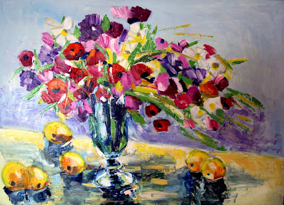 ho già espresso il mio parere...E' M E R AV I G L I O S O.La tua grinta pittorica esce anche in questa composizione di fiori.